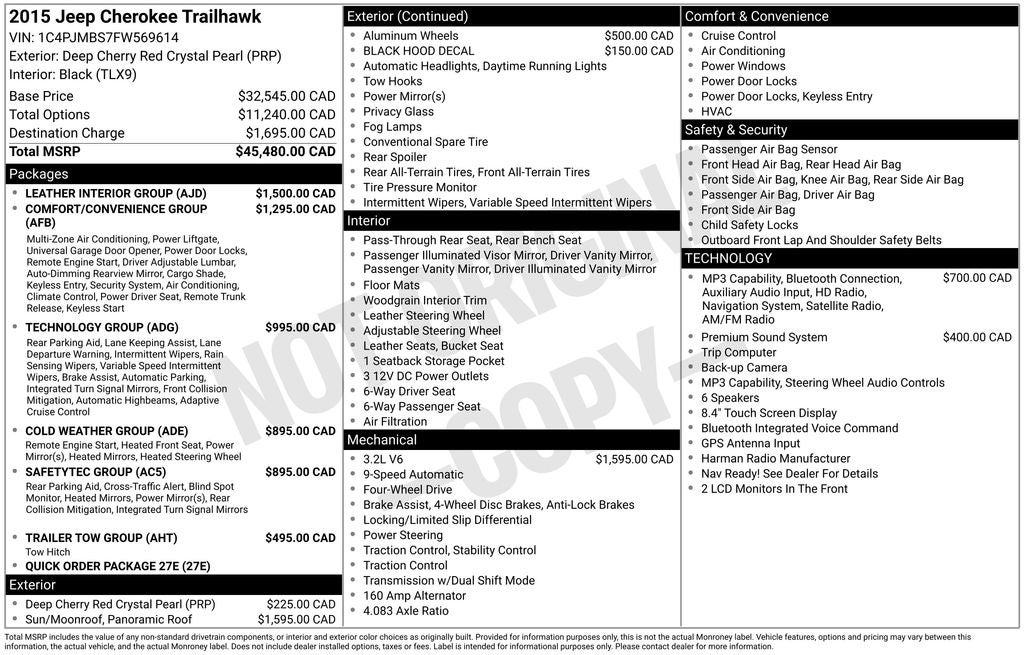 Whether you're heading out on the trail or just need a capable and well-equipped SUV for your daily driving, this 2015 Jeep Cherokee Trailhawk is an exceptional choice. With its rugged good looks, impressive capabilities, and wealth of premium features, it's the perfect blend of off-road prowess and on-road comfort.