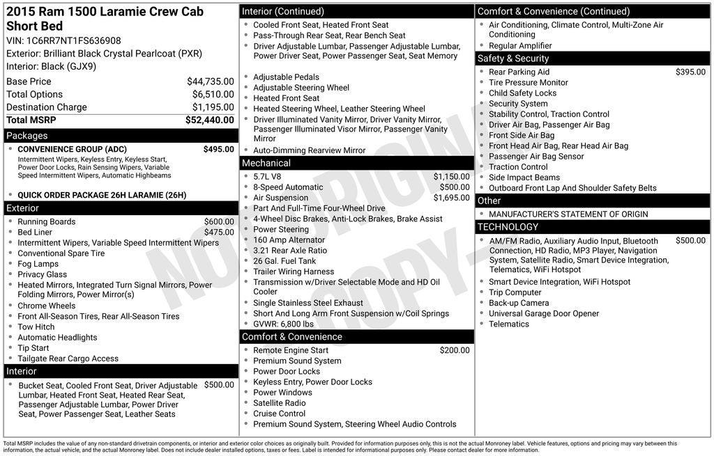 - Vehicle Name: Ram 1500