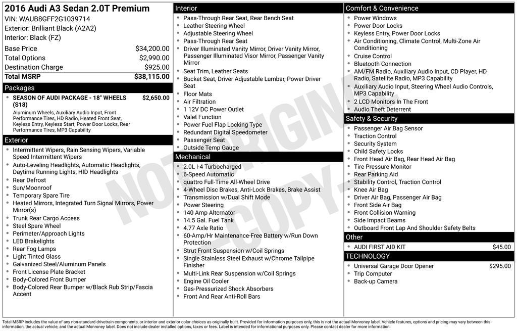 2016 Audi A3 2.0T Premium quattro