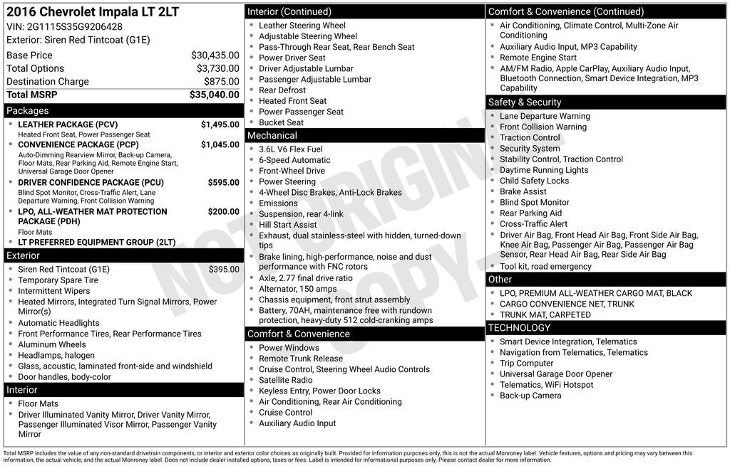 Whether commuting or embarking on a road trip, this 2016 Chevrolet Impala LT 2LT is the perfect companion. Experience the perfect blend of style, technology, and performance. Visit our showroom today and let us demonstrate why this Impala should be your next vehicle.