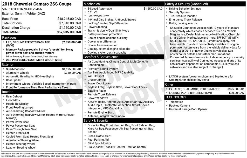 With its striking exterior and well-appointed interior, the 2018 Chevrolet Camaro SS 2SS is a true head-turner. Its aggressive stance, sculpted lines, and bold SS styling cues command attention wherever you go. And with an EPA-estimated 27 highway MPG, you can enjoy the exhilaration of this performance coupe without sacrificing fuel efficiency.