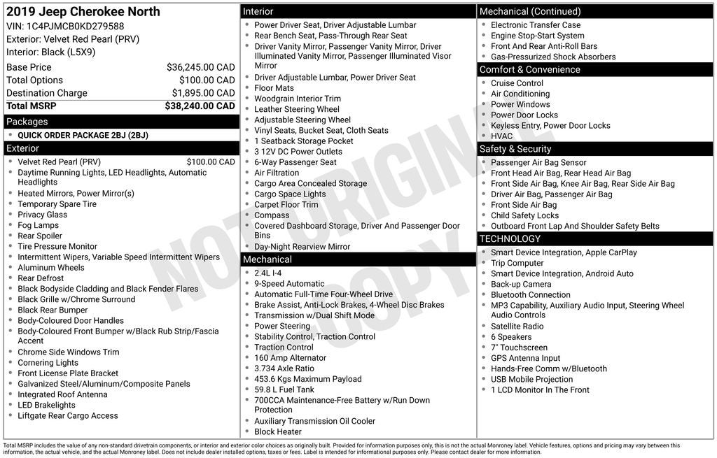 This 2019 Jeep Cherokee Latitude is a versatile and well-equipped SUV that's ready to take on your daily commute and weekend adventures. With its 2.4L I4 engine and 9-speed automatic transmission, this Cherokee delivers a smooth and efficient ride, returning up to 29 MPG on the highway. The four-wheel-drive system ensures confident handling in a variety of road conditions, while the quick order package adds desirable features like the Uconnect 4 infotainment system with a 7-inch display, Apple CarPlay, and Android Auto integration.