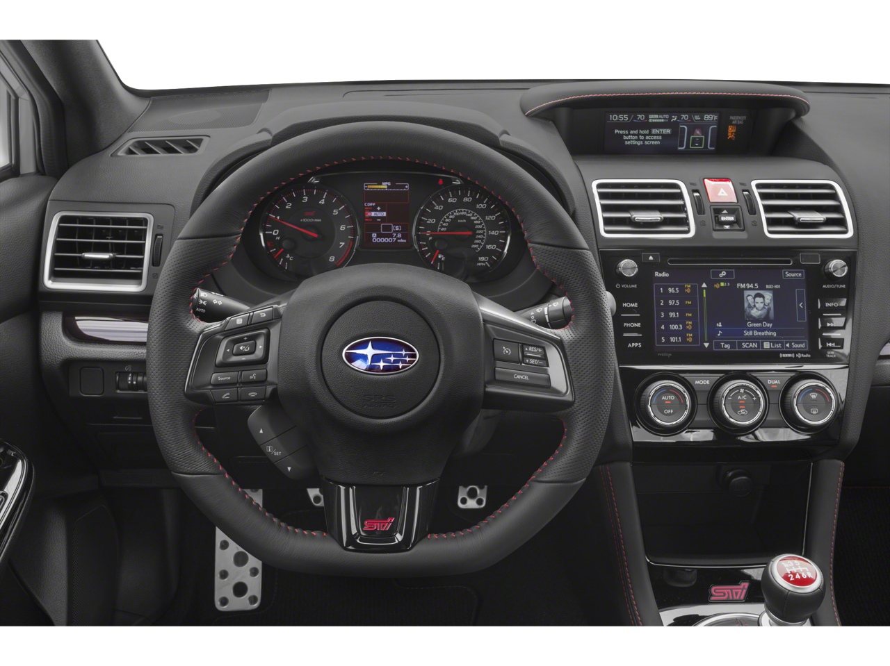 The interior of this WRX STi is equally impressive, with Alcantara Ultrasuede upholstery, heated front seats, and a STARLINK Multimedia Plus System that seamlessly integrates your smartphone via Apple CarPlay and Android Auto.