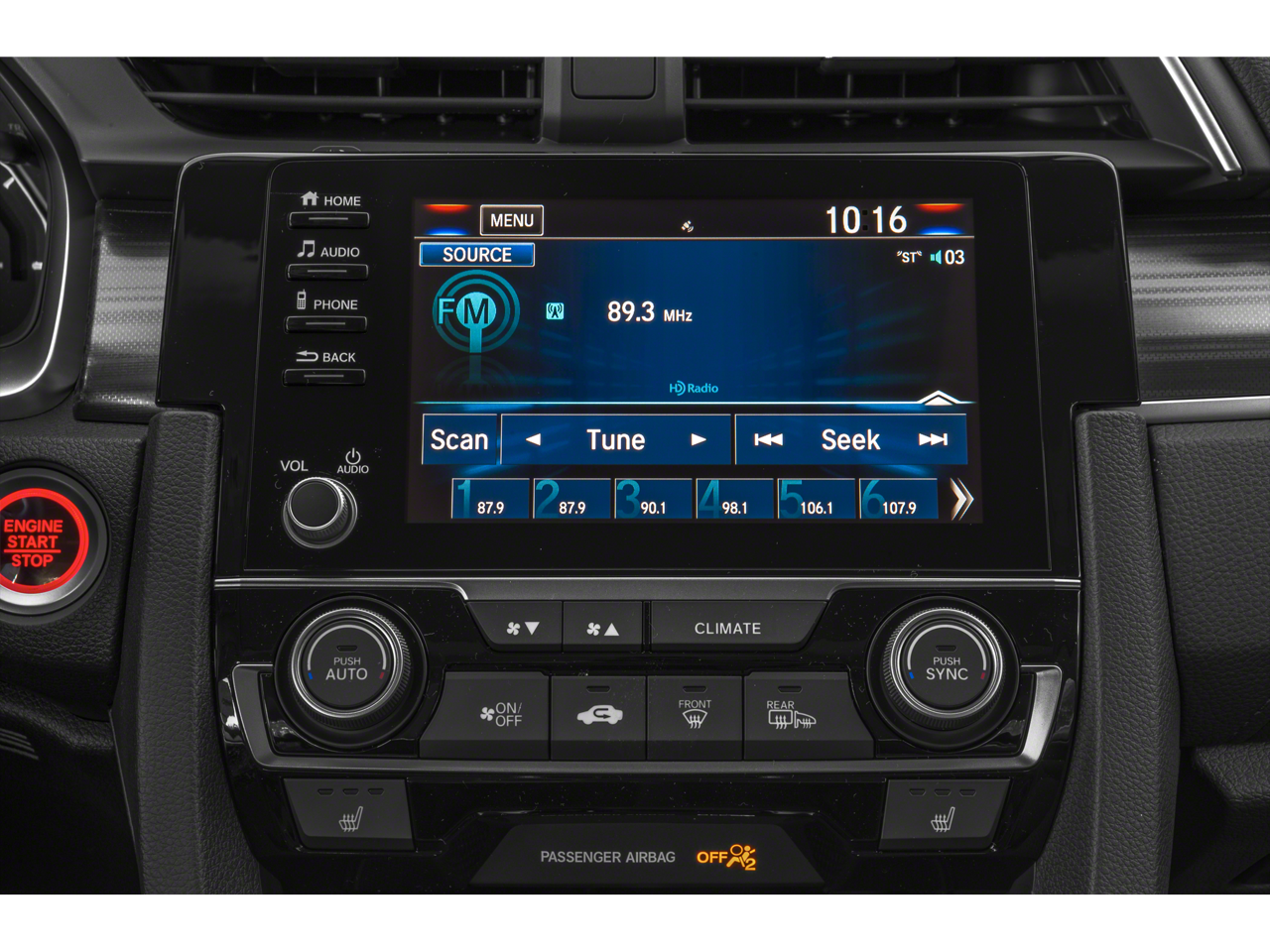 - Radio: 180-Watt AM/FM/HD/SiriusXM Audio System -inc: 8 speakers, 7-inch display w/high-resolution electrostatic touch-screen, knob and hard keys for primary controls and customizable feature settings, Bluetooth HandsFreeLink, Bluetooth streaming audio, radio data system (RDS), speed-sensitive volume compensation (SVC), 1.5-amp USB smartphone/audio interface in front, 1.0-amp USB audio interface port in center console, HondaLink, Apple CarPlay integration, Android Auto integration, SMS text message function, fin-type roof-mounted antenna and illuminated steering wheel-mounted controls