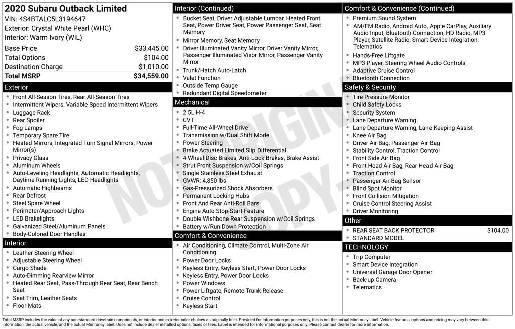 - Vehicle Name: Subaru Outback