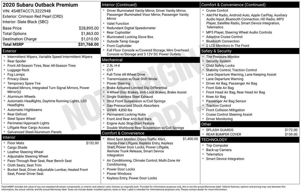 - Vehicle Name: Subaru Outback