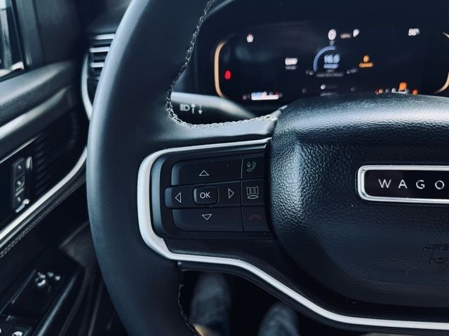 Step inside and be captivated by the Wagoneer's spacious and well-appointed interior, featuring Leather Trimmed Bucket Seats, Heated front seats, and a Ventilated driver's seat for unparalleled comfort. The Power Liftgate and 3rd row seats provide exceptional versatility, allowing you to easily accommodate your passengers and cargo.