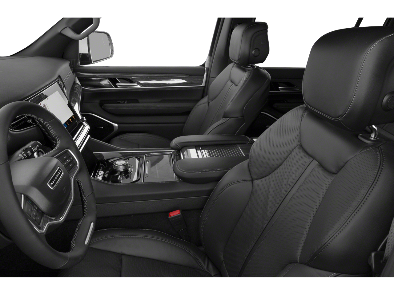Comfort and convenience are also prioritized, with features like heated and ventilated front seats, a heated steering wheel, and a tri-panel sunroof that floods the cabin with natural light. The Wagoneer's advanced safety technologies, including electronic stability control and a surround-view camera system, provide you with peace of mind on the road.