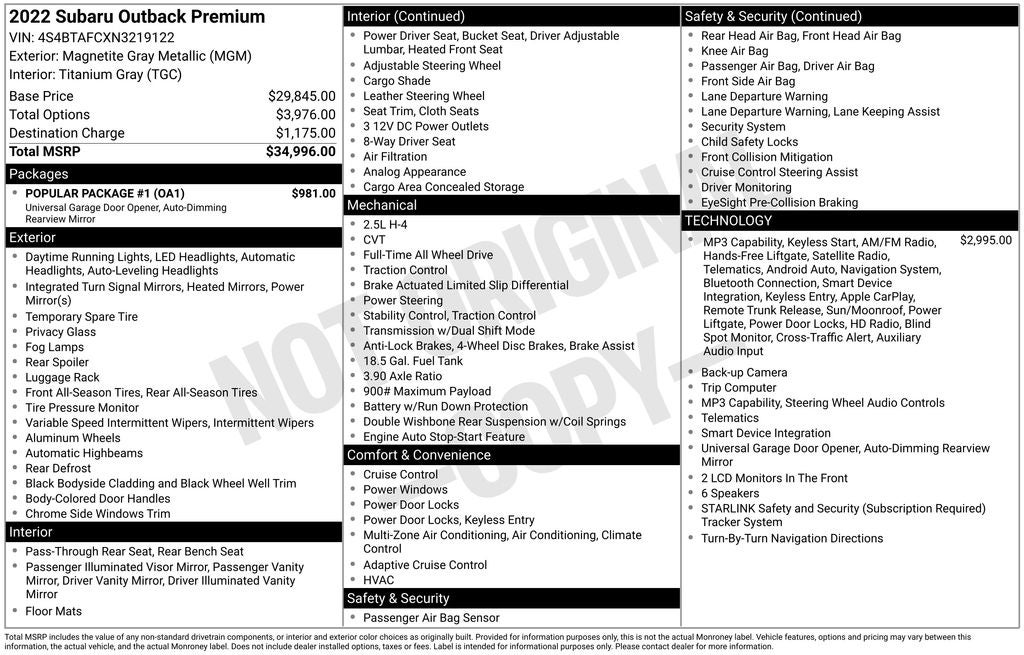 - Vehicle Name: Subaru Outback