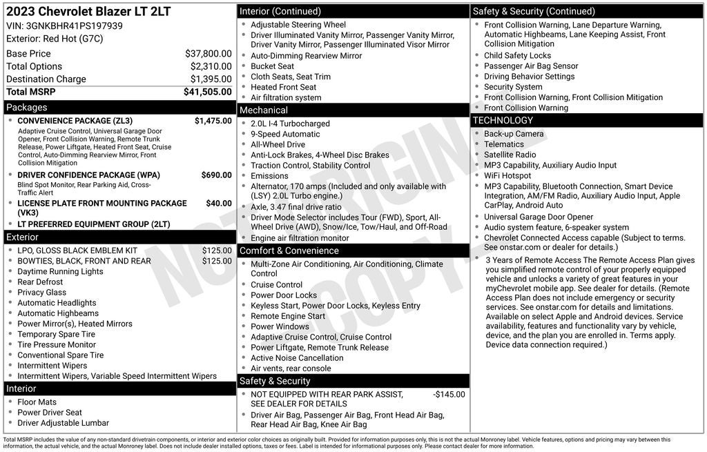 - Vehicle Name: Chevrolet Blazer