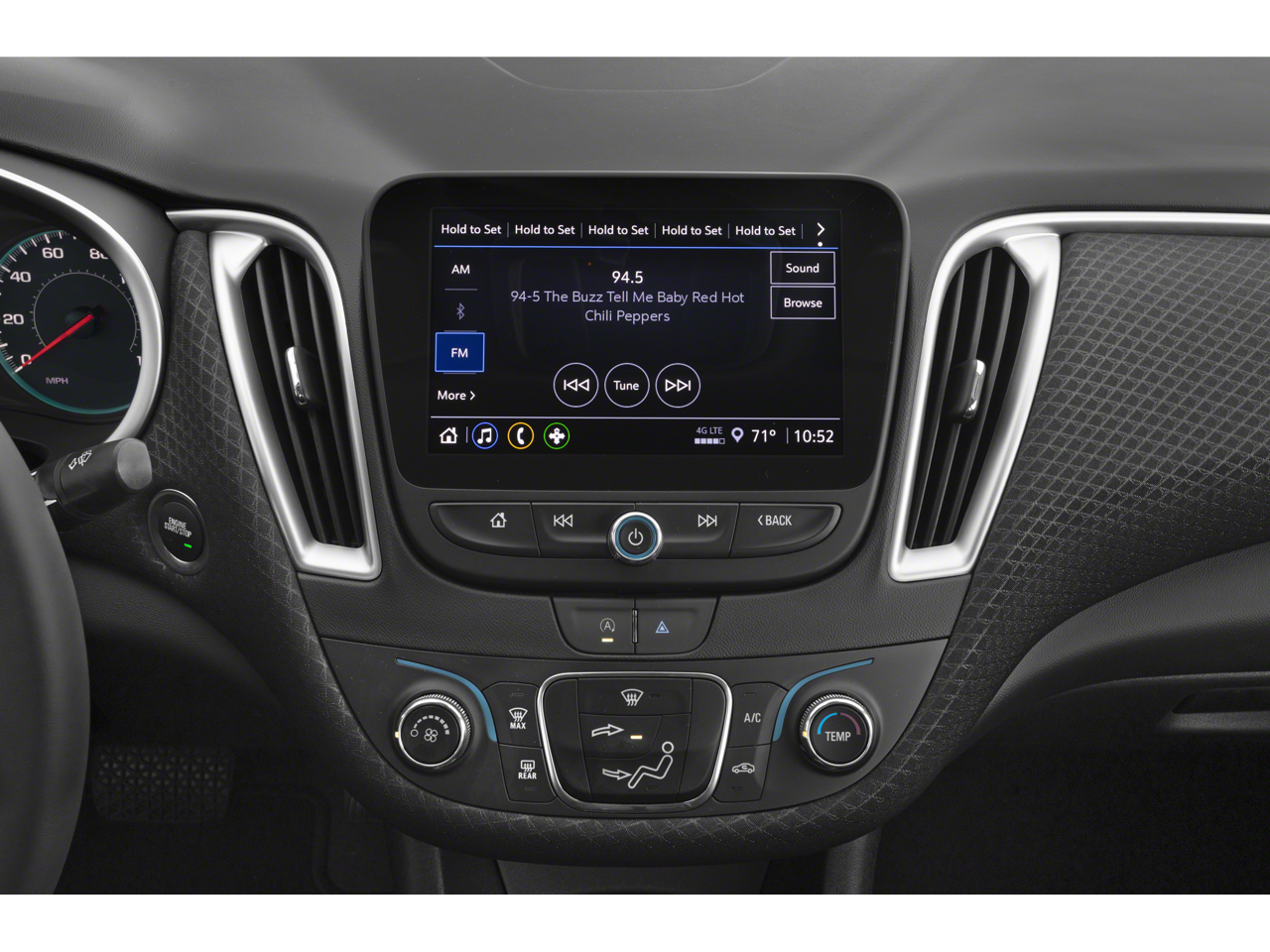 - Audio system, Chevrolet Infotainment 3 system, 8" diagonal color touchscreen, AM/FM stereo. Additional features for compatible phones include: Bluetooth audio streaming for 2 active devices, voice command pass-through to phone, Apple CarPlay and Android Auto capable.
