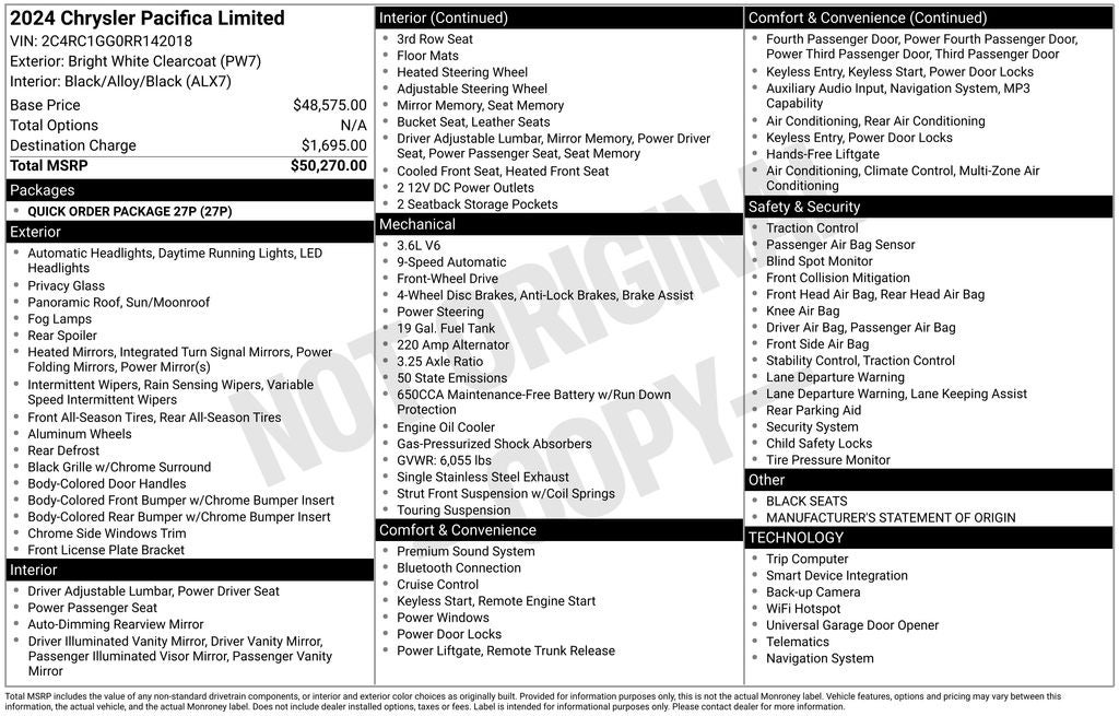 - Vehicle Name: Chrysler Pacifica