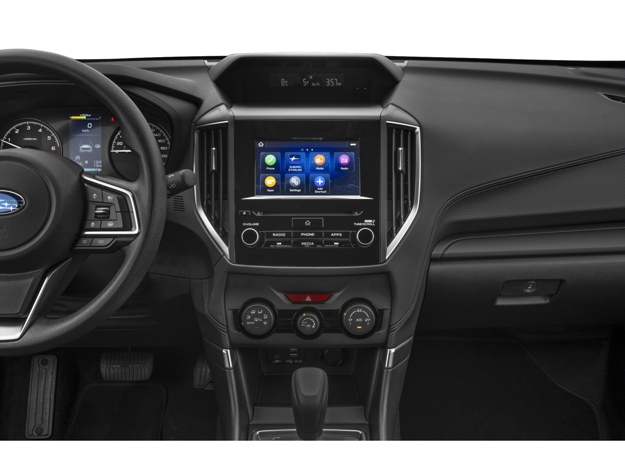 - Radio: Subaru STARLINK 6.5" Multimedia System -inc: AM/FM stereo, multi-touch gesture high resolution display screen, voice activated controls, Bluetooth® audio streaming, hands-free phone connectivity and hands-free SMS text messaging connectivity (refer to subaru.com for cell phone compatibility), iPod control capability, smartphone integration for AHA, Android Auto, Apple CarPlay, Pandora and STARLINK cloud applications (refer to subaru.com for app availability), USB audio system update, steering wheel controls for audio and Bluetooth®, 4 speakers, 3.5mm auxiliary input jack and USB A input/charge port