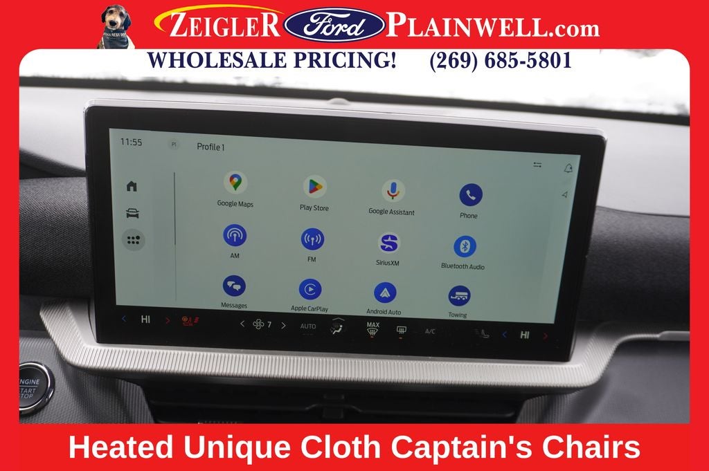 Step inside, and you'll be greeted by a wealth of premium features, including the stunning B&O Sound System, heated steering wheel, and heated unique cloth captain's chairs. The available navigation system and FordPass Connect 5G ensure you're always connected and informed on the road.