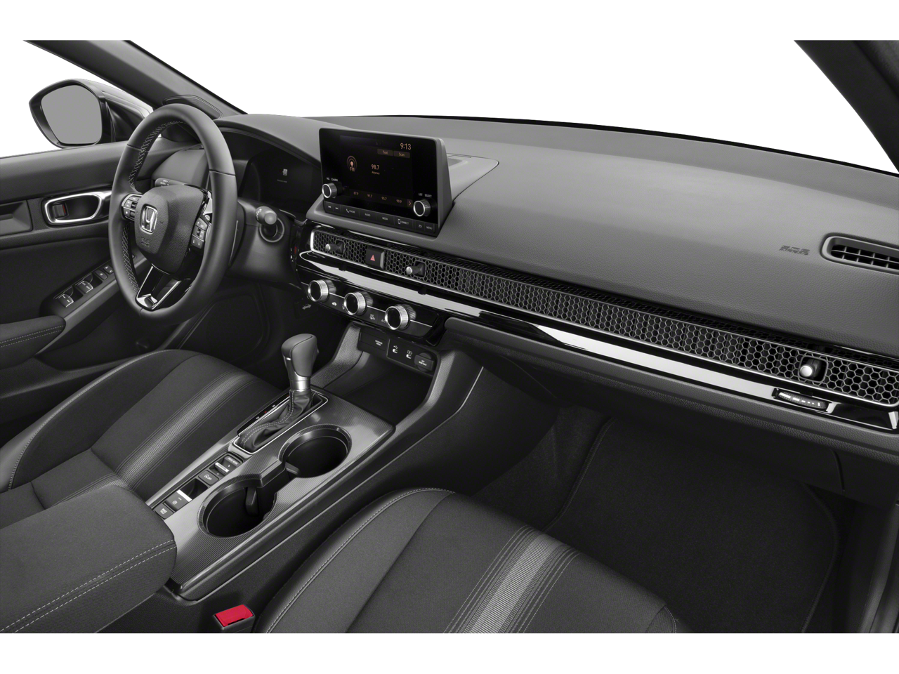 The interior of this Civic Sport is equally impressive, with a host of premium features that cater to your every need. The cloth/leatherette seating surfaces provide a refined and luxurious feel, while the split-folding rear seat offers versatile cargo space for all your adventures. Stay connected with Apple CarPlay and Android Auto, and enjoy the convenience of the 180-Watt audio system.